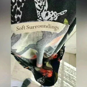 Soft Surroundings Womens Midi Skirt Size L Black Colorful Floral Butterfly Zip