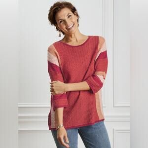 Soft Surroundings Wool Blend Abril Stripe Sweater Textured Pullover Top sweater