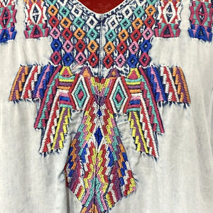 Soft Surroundings Work of Art Embroidered Blue Chambray Popover Blouse Top P/S