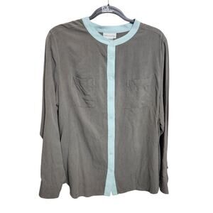 Soft Surroundings XL 100% Silk Twill Lux Gray Robins Egg Blue Blouse Shirt Top
