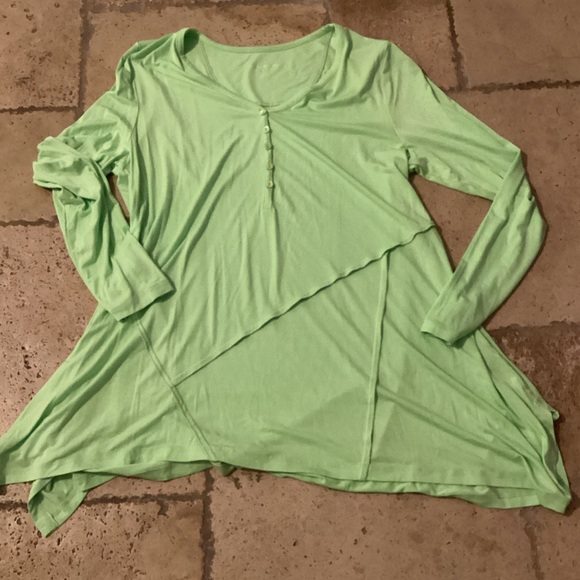 Soft Surroundings XL Ravello Henley Tunic Top Green Long Sleeve Stretch Womens