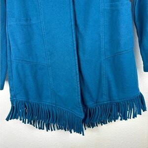 Soft Surroundings XS Teal Blue Cardigan Fringe Jacket Sweater Cotton Blazer