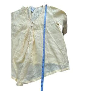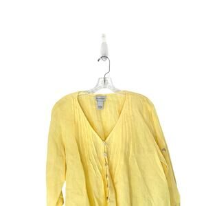 Soft Surroundings Yellow Pleated Lagenlook Coastal Linen Blouse Medium Petite