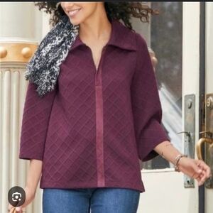 Soft Surroundings Zip Pullover Size PXL Gold Hardware Textured 3 Quarter Sleeve