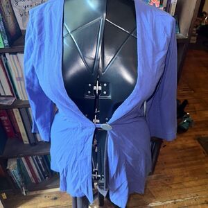 Soft Surroundings periwinkle, lightweight, long sleeve, single button top. Pairs well with a shell or tee and jeans or slacks. Approximately 18 inches from armpit to armpit, 16 inches across the buttoned area, 29 inches long. In good, used condition. From a pet and smoke free house.