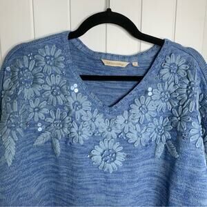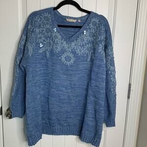Soft Surroundings beaded embroidered floral sweater size 1X