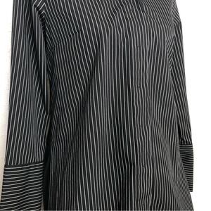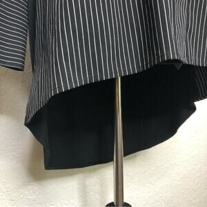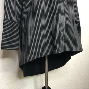 Soft Surroundings black white striped button down tunic top. Collared with full button down front. Button cuff sleeves. Striped front and sleeves with solid back. Curved high low hemline. Size Small. Excellent preowned condition.