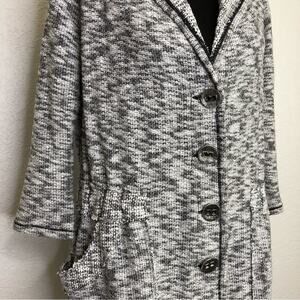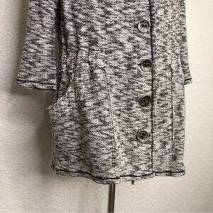 Soft Surroundings black white tweed knit button front hooded jacket size Medium