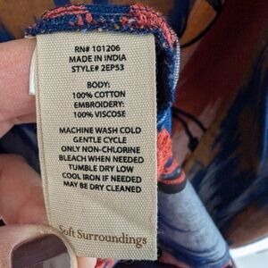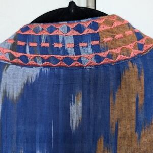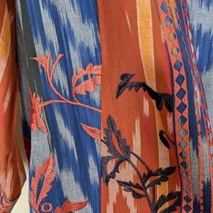 Soft Surroundings blue orange ikat embroidered duster kimono sz L NWT