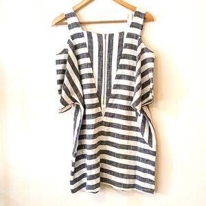 Soft Surroundings cold shoulder linen blend tunic top. Black and white stripes, with pockets, back zip