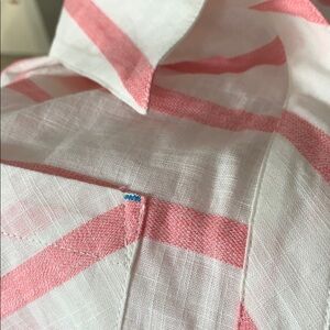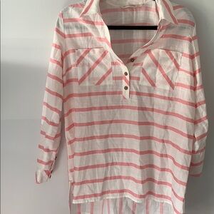 Dial up your dockside style with this cheerful pullover of yarn-dyed stripe. In back, two pintucks and waist seam lend a splash of interest and fit. Bartack details. Women 30"/32" long Great condition! Chest is 22" across and 29" long in front and 31" long in back..
