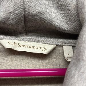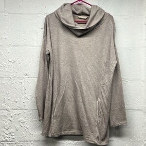 Soft Surroundings cowl neck sweater with pockets sz large. Oatmeal color. EUC. Super soft. Ribbed side design.