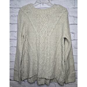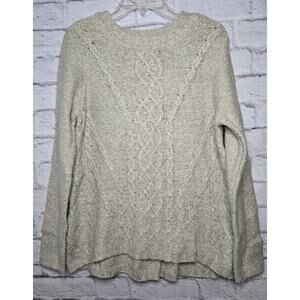 Soft Surroundings cream Oatmeal cable knit pullover crew sweater Medium.