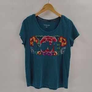 Soft Surroundings embroidered Tee size Medium Green Short Sleeve LOVE