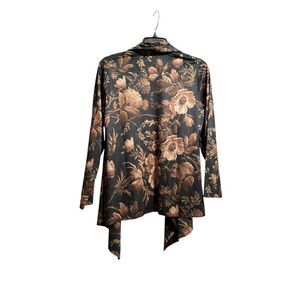 Soft Surroundings faux suede floral shape drape cardigan jacket PM petite