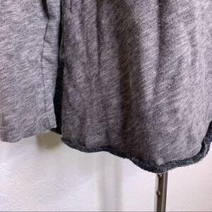 Soft Surroundings charcoal gray marled top. Pullover style with scoop neckline. Rolled hemline. Exposed raw seams at shoulders. Contrasting darker panel at the bottom hemline. Size Medium. Fair preowned condition. One small hole in seam under arm where stitching has come undone as shown. 100% cotton. Machine wash.