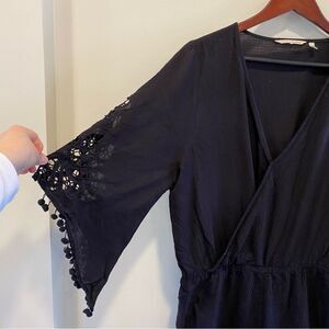 Soft Surroundings jumpsuit womens large eyelet sleeves pom pom trim black witchy
