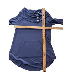 Soft Surroundings knit cowl neck tunic 3/4 sleeves pocket Staple Med Minimalist