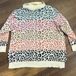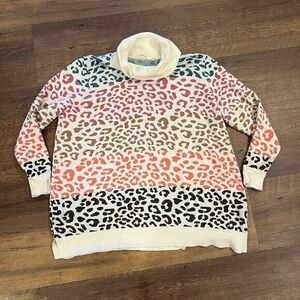 Soft Surroundings knit sweater womens size 2X multi colored leopard print