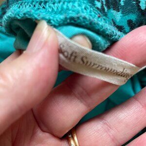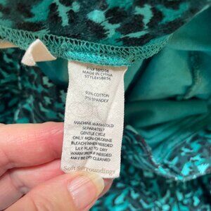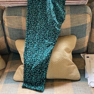 These leggings are gently used cotton and spandex fabric and comfortable. The pattern is fun and colors are still bright. They are very soft. They were cared for well and the quality is still great.