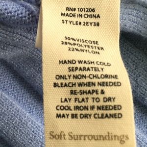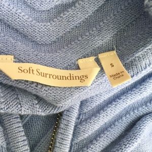 Gorgeous Soft Surroundings size S light cornflower blue sweater. Full front goldtone zipper. The sweater is super soft and cozy. Pretty details. 30” long. Great over leggings, jeans, or pants.