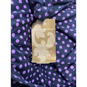 Flowy and feminine, this Soft Surroundings navy maxi dress features a charming lavender polka dot print, wide straps, and a flattering scoop neckline. Lightweight, stretchy, and travel-ready—perfect for warm weather styling, vacation wear, or effortless everyday elegance. Size L Petite.