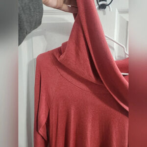 This Soft Surroundings tunic blouse is a must-have for your wardrobe! The coral color is perfect for any occasion, from a casual day out to a party or cocktail event. The blouse features an off-the-shoulder neckline and long sleeves, with an asymmetrical design that adds a touch of style.