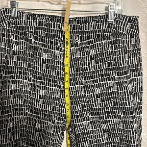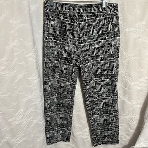 Cute pants and so comfortable. Stretchy and pull on pants, high waisted and cropped black and white print