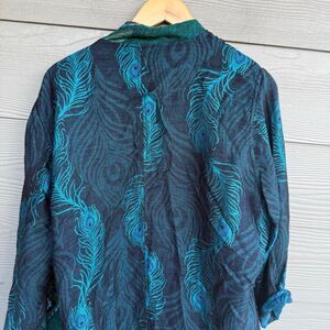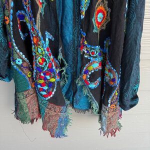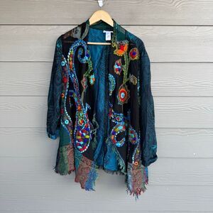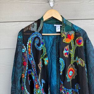 Soft Surroundings peacock embroidered open knit cardigan. Wool/silk blend. Size 1x.