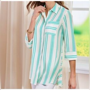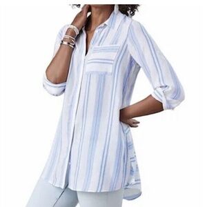 Soft Surroundings petite button up tunic Red White Ladson Shirt Stripe Size PXL