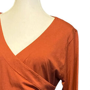 Soft Surroundings rust colored Surplice Stretch Top faux wrap shirt size large