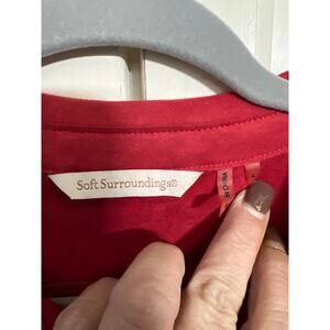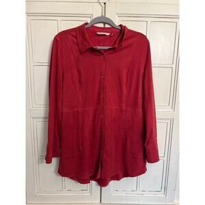 Soft Surroundings size large faux suede snap down shirt in a dark red color. Measures 22” from armpit to armpit and 29” long.