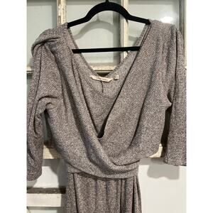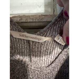 Soft Surroundings size medium stretch knit dress in excellent condition. Crisscrosses in the front for a cute look. Measures 20@ from armpit to armpit. 16” across the waist and it is 55” long.