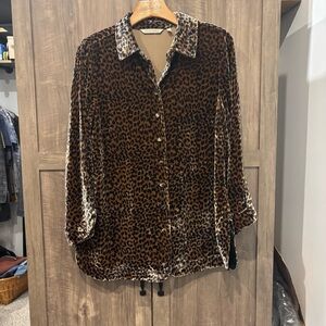Soft Surroundings small Icon Silk Velvet Poets Tunic Shirt Top Animal Print