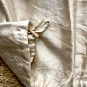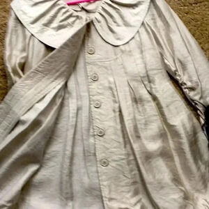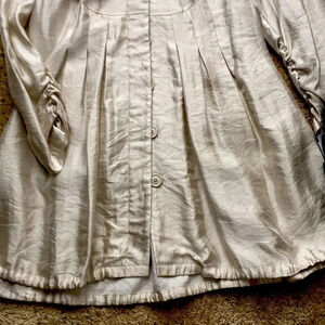 Small champagne color jacket, beautiful satin buttons up front, adjustable sides, collared, unlined..