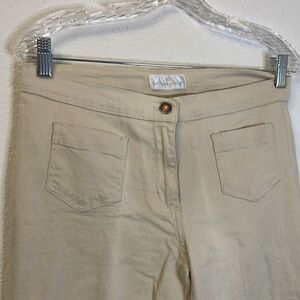 Soft Surroundings tan cropped wide leg pant with buttons | size M