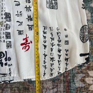 Soft Surroundings white button down blouse tunic w Asian Chinese script. Tall long fit.
