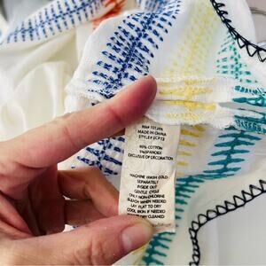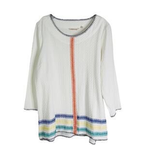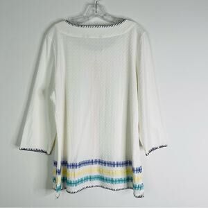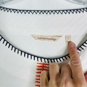 Soft Surroundings white blue embroidered coastal lightweight tunic top large