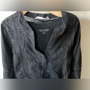 Soft Surroundings|Black Larissa Top with Black Tank built in•••Embroidered Boho