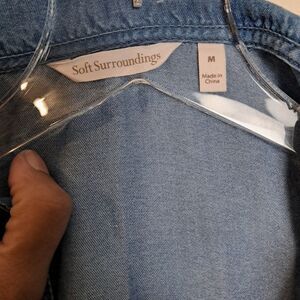 Soft Surroundings Denim Chambray Ruffle Collar Button Tunic Dress Blue Medium