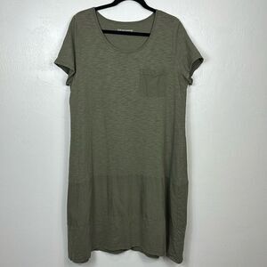 Soft Surroundings Khaki Green Linen Cotton Midi Dress Size L