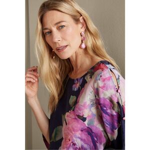 Soft Surroundings Lizette Top in Marseille Floral Exploded pattern. linen blend