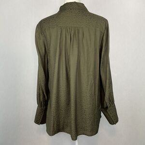 Soft Surroundings olive green long sleeve Coastline printed keyhole blouse. Size large. New without tags. No stains. Animal print. Triple keyhole neckline. 5 button cuffed sleeves. 100% Viscose. Armpit to pit measures 21.5 inches. Top of shoulder down 26 inches. Comes from a smoke free home.