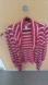NWOT. Size PP (double petite). cranberry red and white, stripe, long sleeve open front cardigan, mid thigh length, viscose blend, knit stretch, medium weight sweater material.