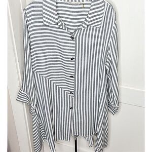 Soft Surroundings Standout Asymmetrical Striped Button Up Tunic Large -missing size tag