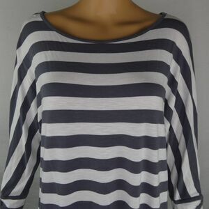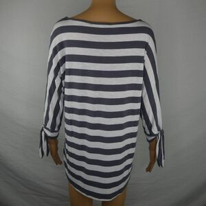 Soft Surroundings Striped Tie Sleeve Tunic Blouse Grey White Gray Medium