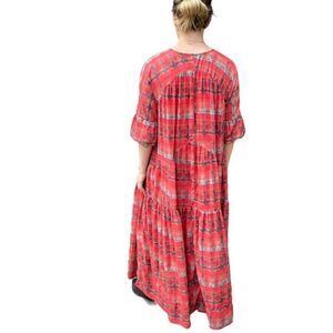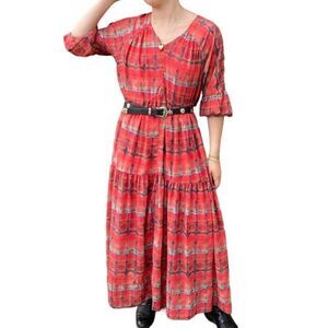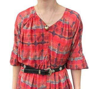 Soft Surroundings Tie Dye Watercolor Orange Boho Hippie Flowy Maxi Dress Sz S