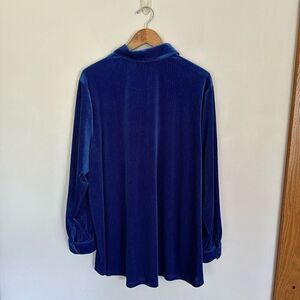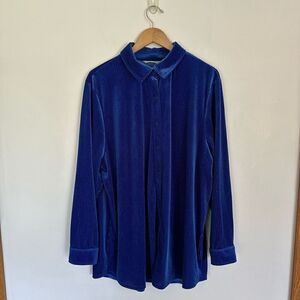 Soft Surroundings Women’s Cobalt Blue Ribbed Velvet Casual Oversized Boyfriend Button Down Shirt