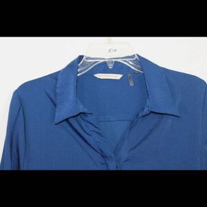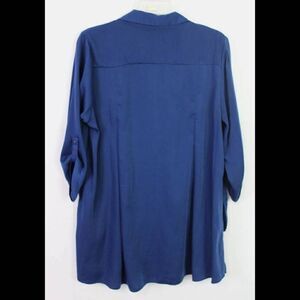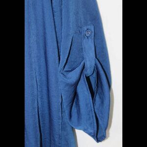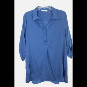 Soft Surroundings Womens M Blue Front Flap V-neck Roll Tabs Back Pleats Blouse.