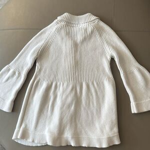 Soft Surroundings women’s white cotton tunic sweater. Features spread collar, bell sleeve, 4 artistic button front closure, chunky knit with A line shape.
